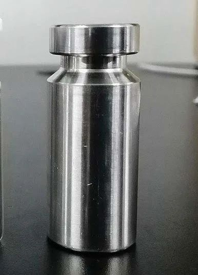判定包裝系統(tǒng)是否有泄漏的重要參照物是陰性對照,設(shè)計(jì)采用316不銹鋼材質(zhì)制作與被測樣品外形、體積尺寸相同的實(shí)心體,作為陰性對照樣品。把陰性樣品放到測試腔進(jìn)行測試,連續(xù)測試10次,均值為104 Pa,RSD=0.89%。陰性樣品的重復(fù)性良好 ,測試結(jié)果為無泄漏。陰性樣品見圖3。