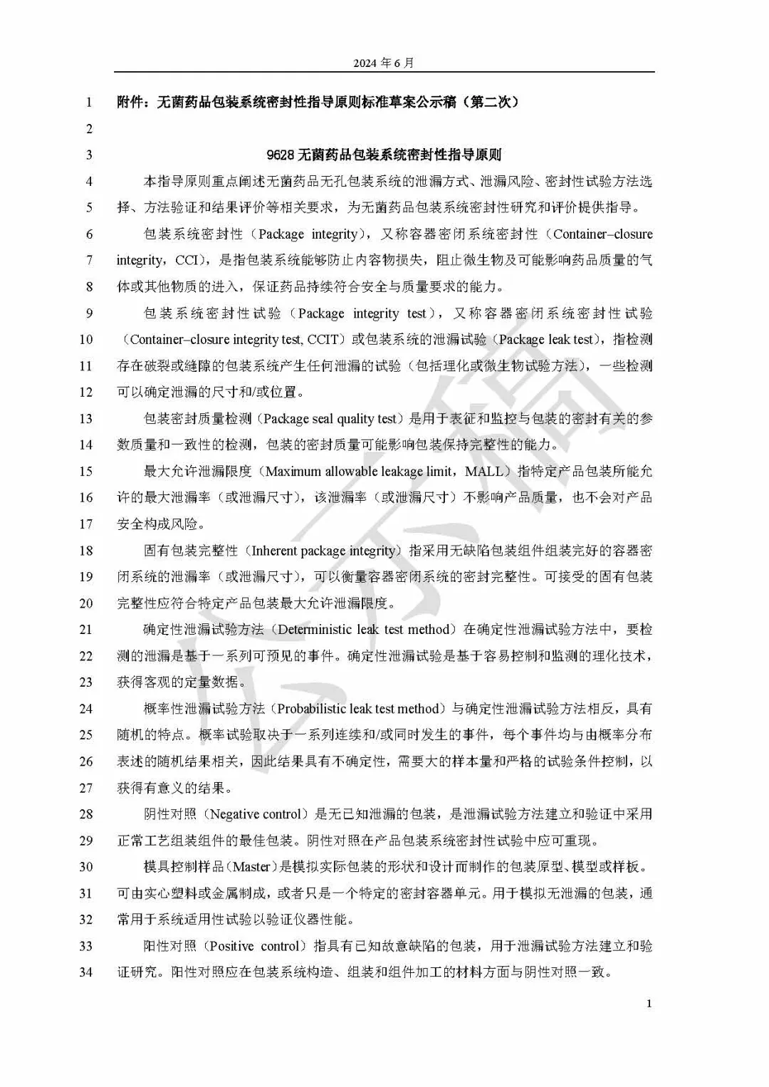《9628無(wú)菌藥品包裝系統(tǒng)密封性指導(dǎo)原則公示稿》按照《“十四五”國(guó)家藥品安全及促進(jìn)高質(zhì)量發(fā)展規(guī)劃》和《中國(guó)藥典》2025年版編制大綱的規(guī)劃制定。藥品包裝系統(tǒng)密封性(包裝材料密封完整性) 保證是作為藥品整個(gè)產(chǎn)品生命周期質(zhì)量安全的關(guān)鍵因素之一。其主要參考了USP1207相關(guān)章節(jié)和國(guó)家藥監(jiān)局藥審中心通告2020年第33號(hào)“化學(xué)藥品注射劑包裝系統(tǒng)密封性研究技術(shù)指南(試行)”等,用于規(guī)范和指導(dǎo)我國(guó)藥包材密封性研究和評(píng)價(jià)工作。第一次公示時(shí)編號(hào)為 9650,本次為第二次公示。