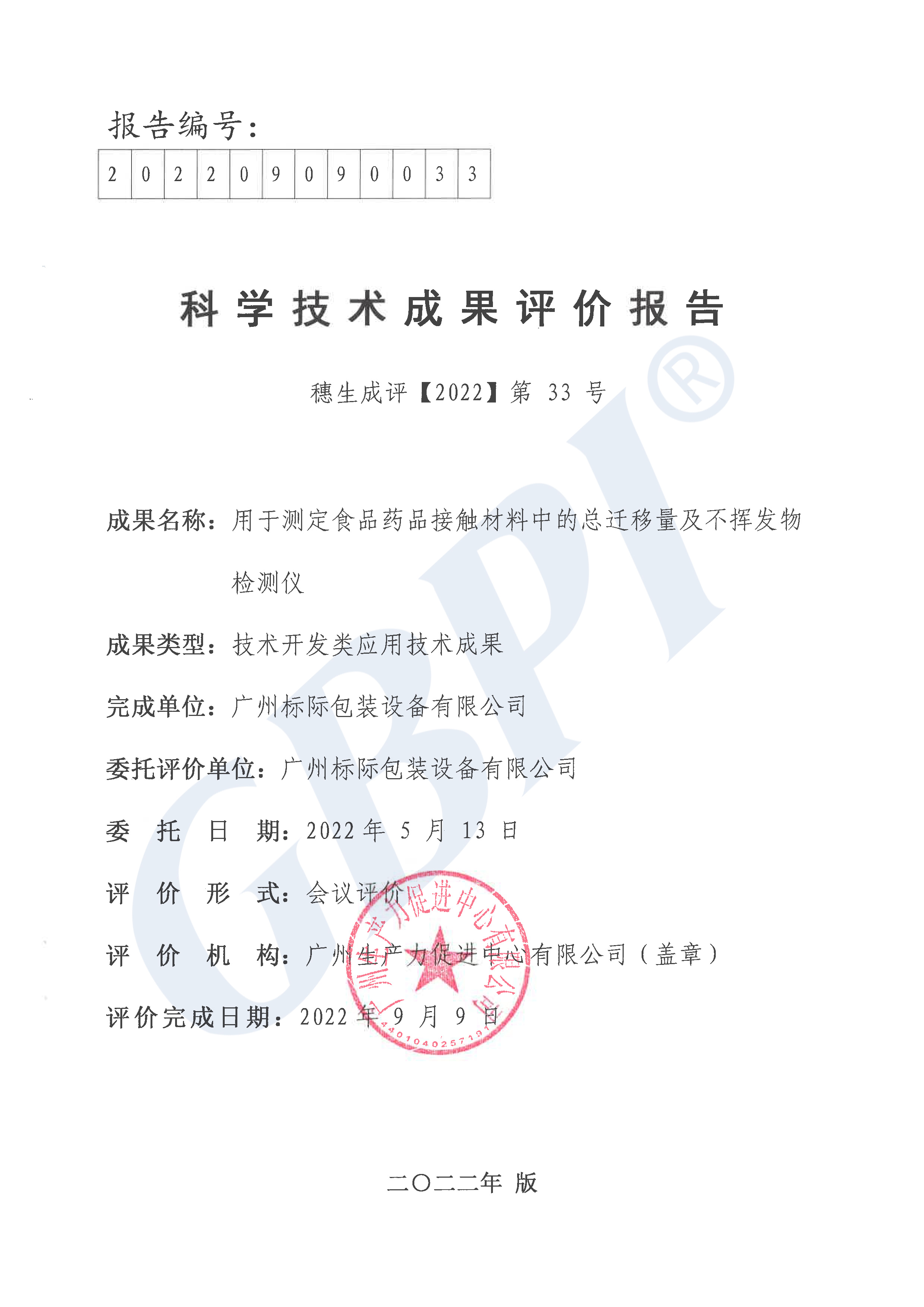 發(fā)布時間:2022-09-302022年9月9日,在廣州召開了由標際完成的“用于測定食品藥品接觸材料中的總遷移量及不揮發(fā)物檢測儀”科技成果評價會。