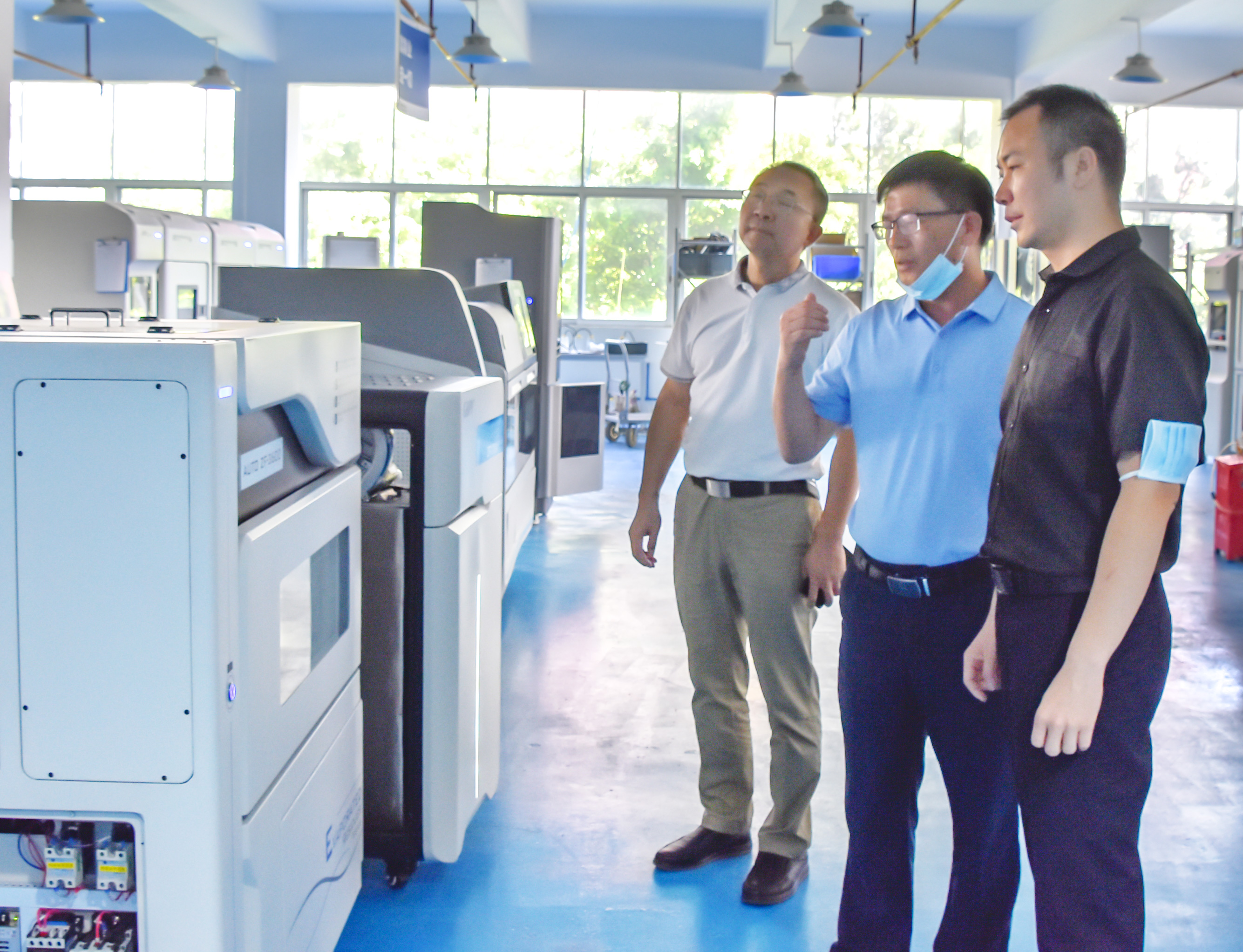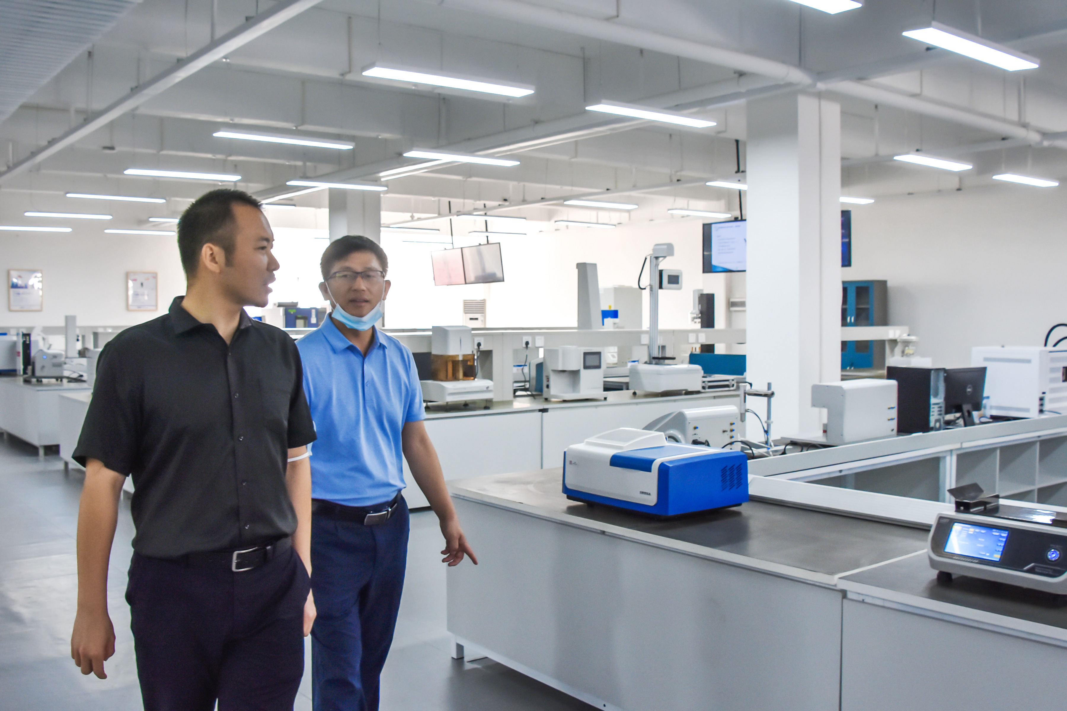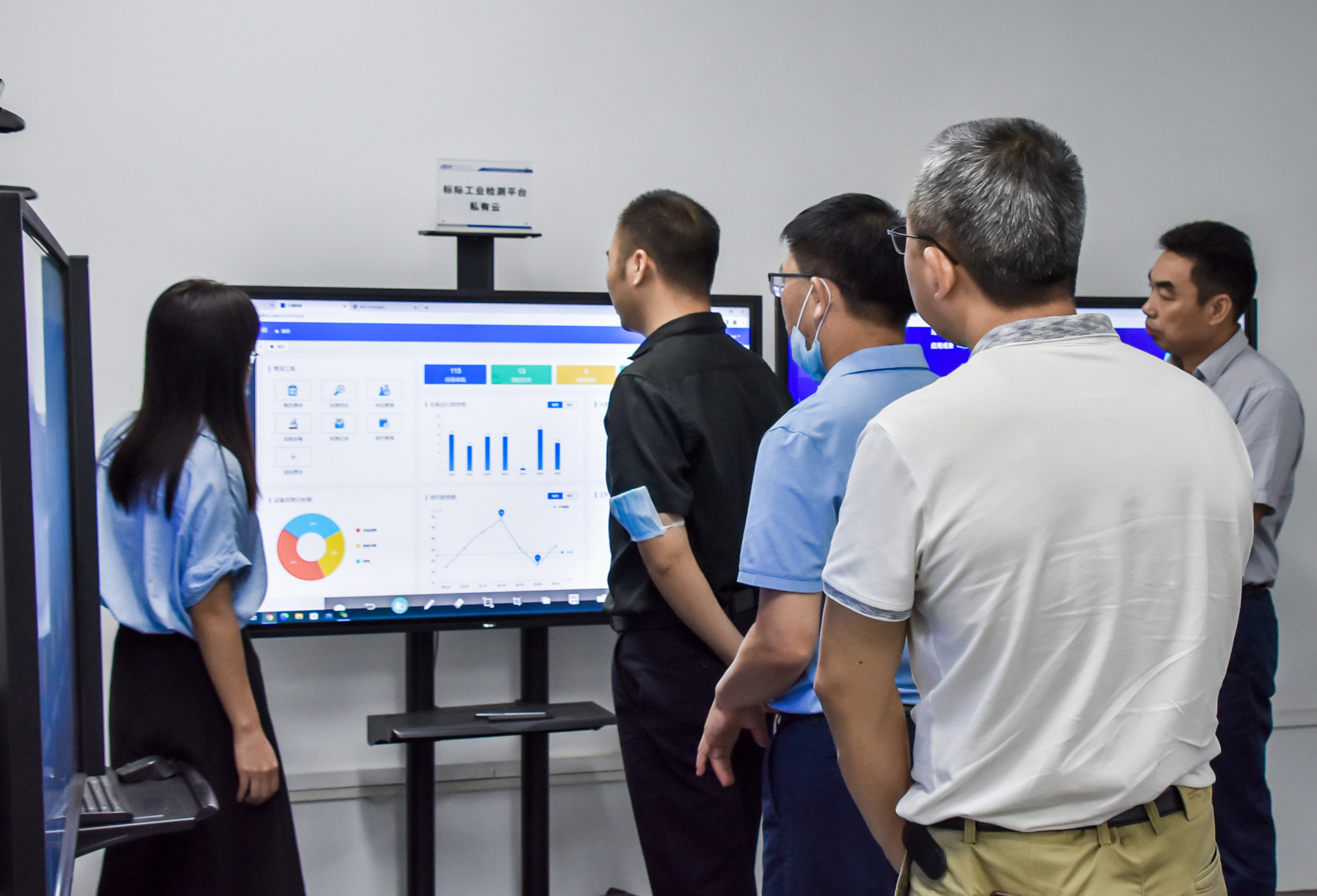 在廣州標際董事長周學成的陪同下,趙書記一行深入?yún)⒂^了標際各類儀器生產(chǎn)車間、CNAS實驗室、數(shù)字化實驗室、展示中心等。