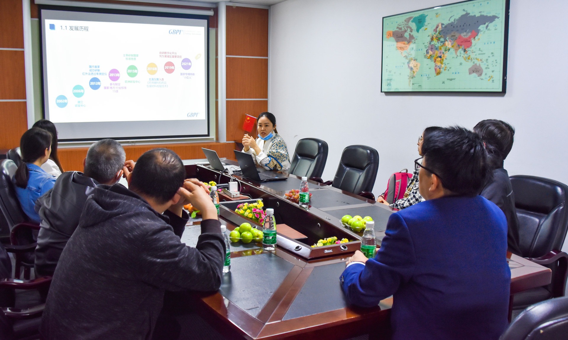 GBPI廣州標際黃經(jīng)理向來訪領(lǐng)導(dǎo)們介紹了廣州標際二十年來的發(fā)展歷程及標際在行業(yè)地位:目前行業(yè)唯一一家國家級專精特性小巨人企業(yè);研制出薄膜透氣性、透氧性、透濕性的標準物質(zhì),先后獲國家標準物質(zhì)認定,成為亞太地區(qū)首家薄膜透氣性、透氧性、透濕性標準物質(zhì)研制單位;擁有CMA認證、CNAS資質(zhì)認證的檢測中心。