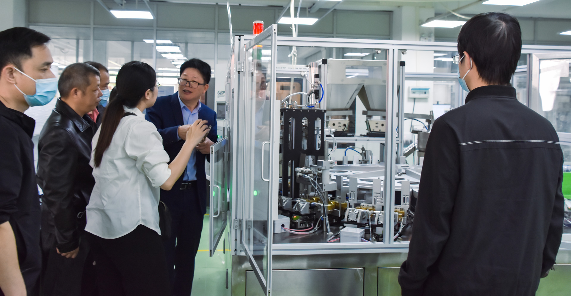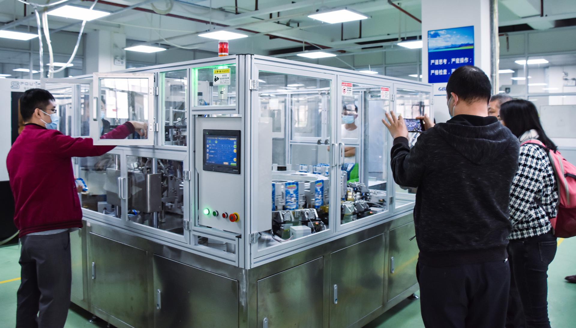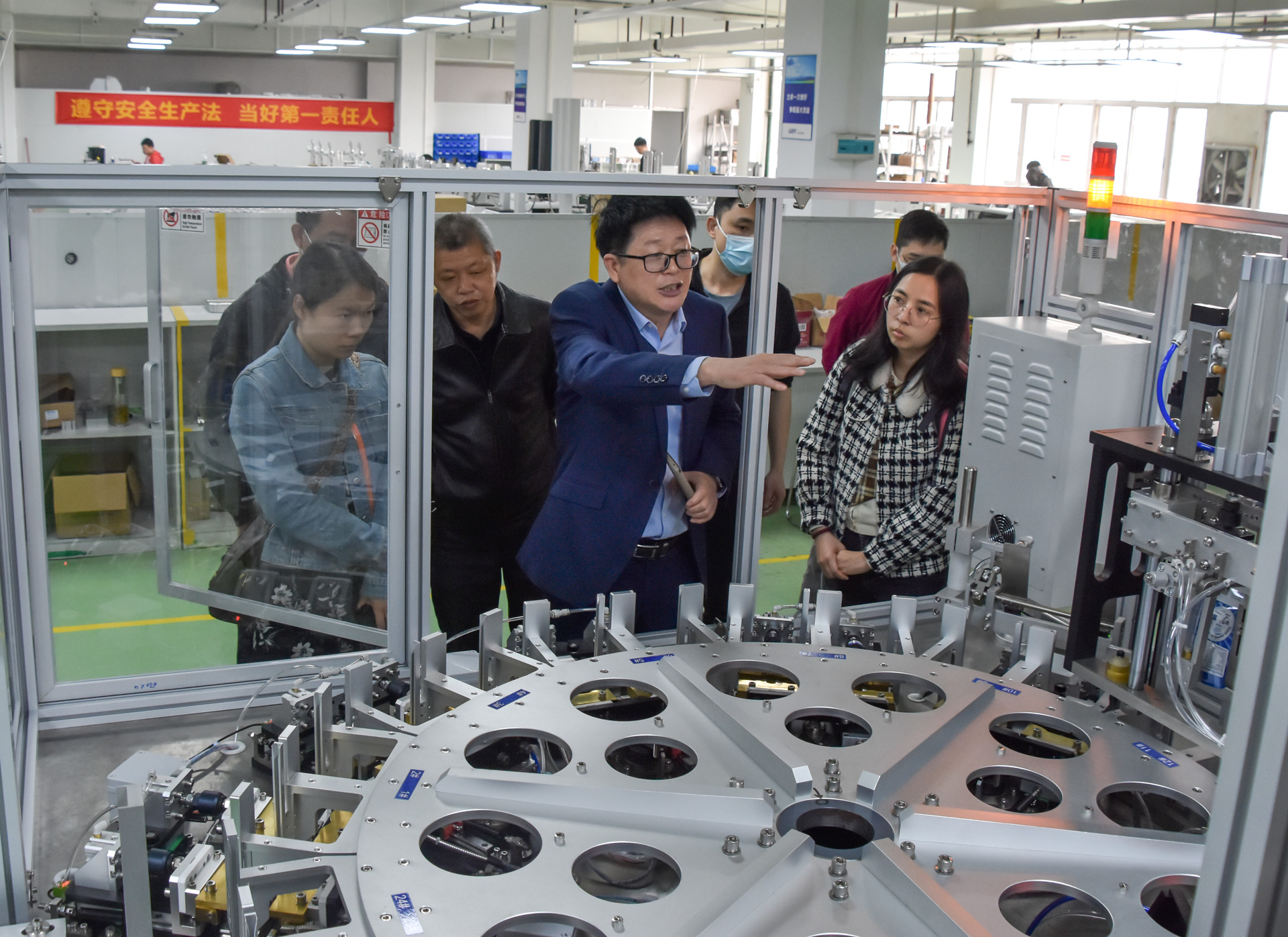 ▲ 考察全自動轉(zhuǎn)盤式封管機