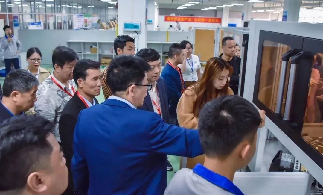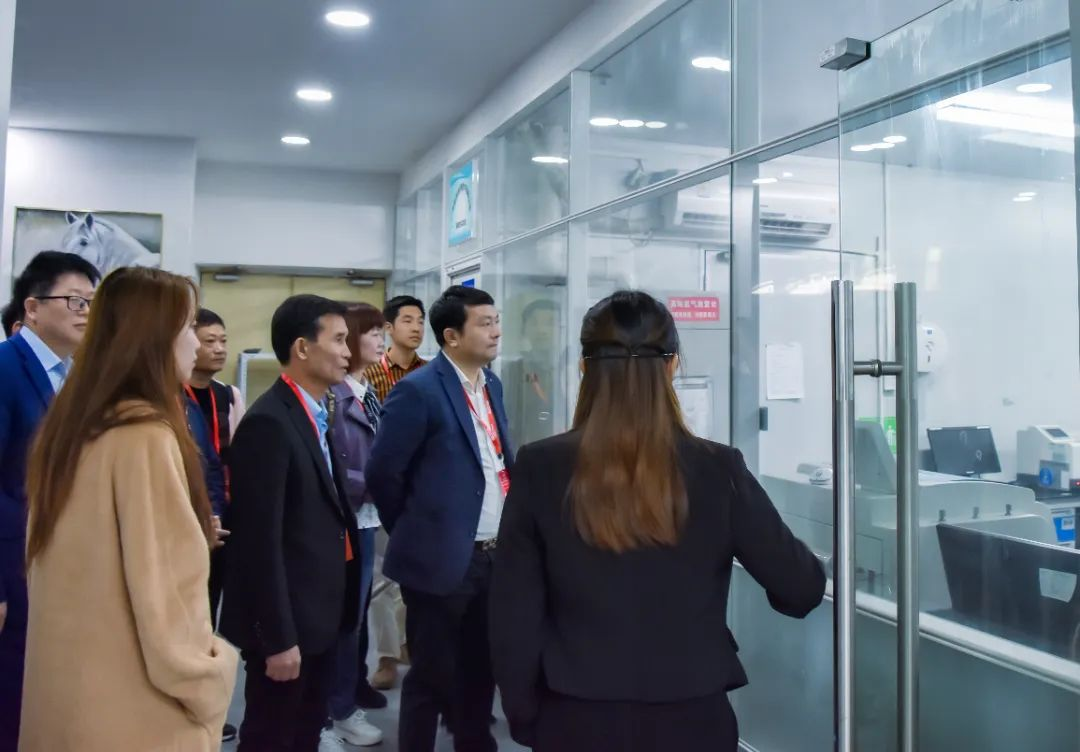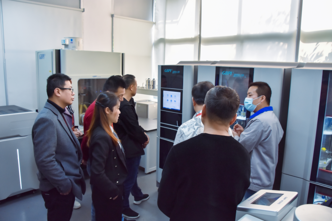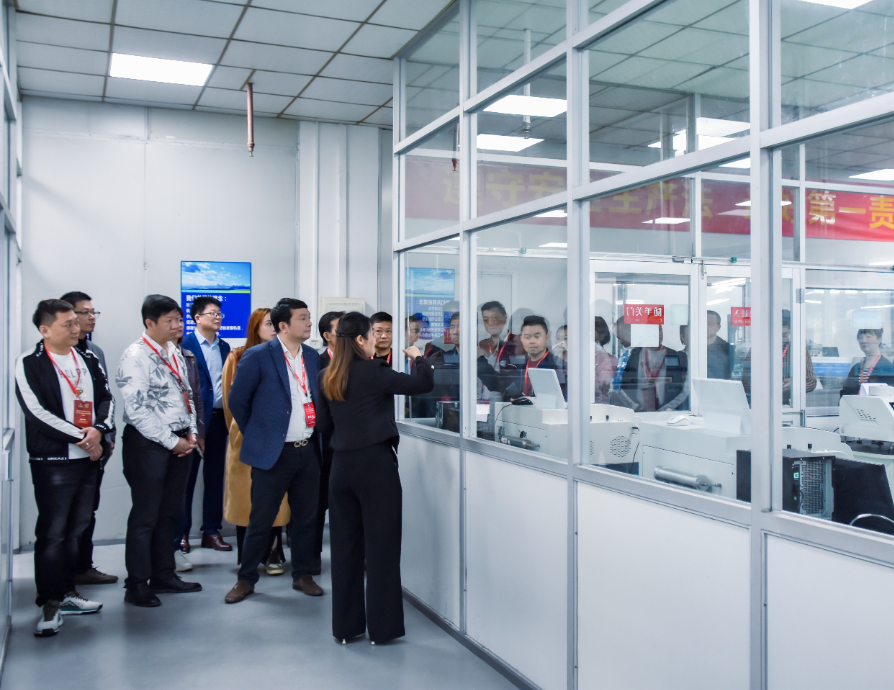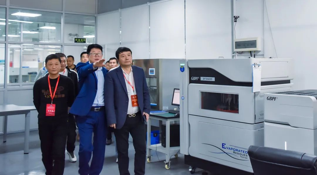 廣州標(biāo)際總經(jīng)理周學(xué)惠、客戶黃經(jīng)理帶領(lǐng)潮安區(qū)包裝印刷行業(yè)協(xié)會王奕丹會長一行參觀了阻隔性能檢測儀器實驗室、基礎(chǔ)儀器生產(chǎn)車間、數(shù)字化實驗室、應(yīng)用場景綜合展廳等場地。