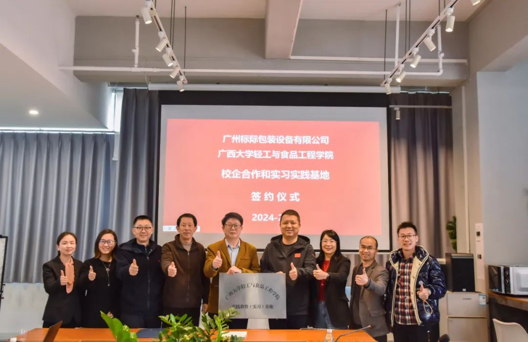 ▲雙方合影留念2024年2月29日,廣西大學(xué)輕工與食品工程學(xué)院與GBPI 標(biāo)際在廣州標(biāo)際總部舉行了校企合作和實(shí)習(xí)實(shí)踐基地簽約儀式。廣西大學(xué)輕工與食品工程學(xué)院書記姜瑋、包裝工程專業(yè)負(fù)責(zé)人黃崇杏、系副主任