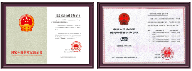國家標準物質(zhì)定級證書、制造計量器具許可證